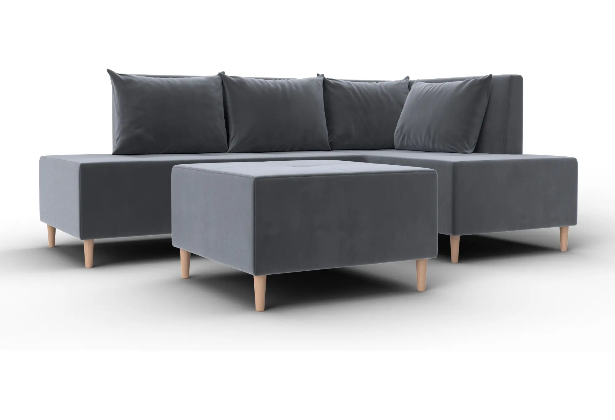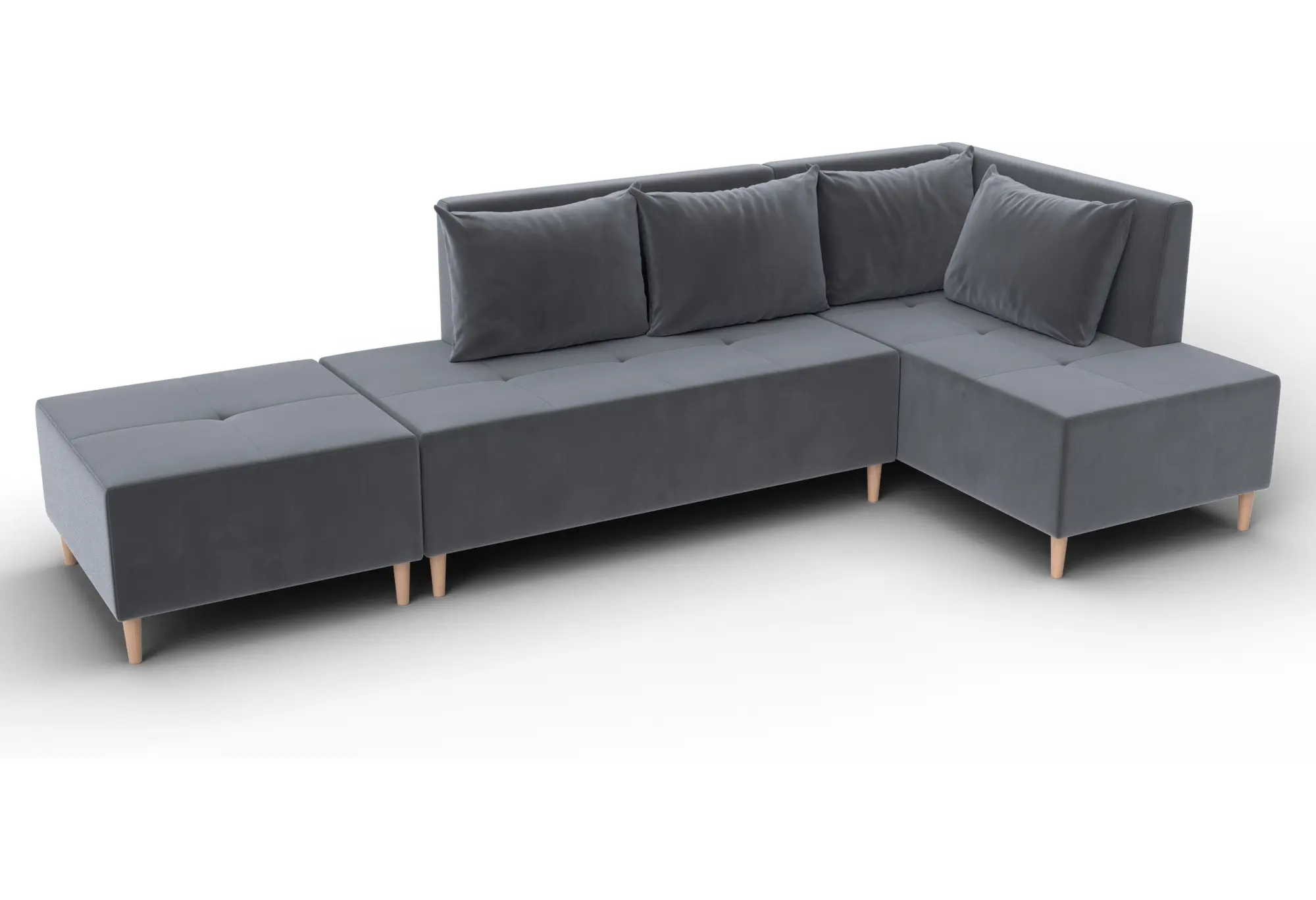 Диван угловой модульный с пуфом Лига-126 угол правый SEVEN 17 серый (Велюр)