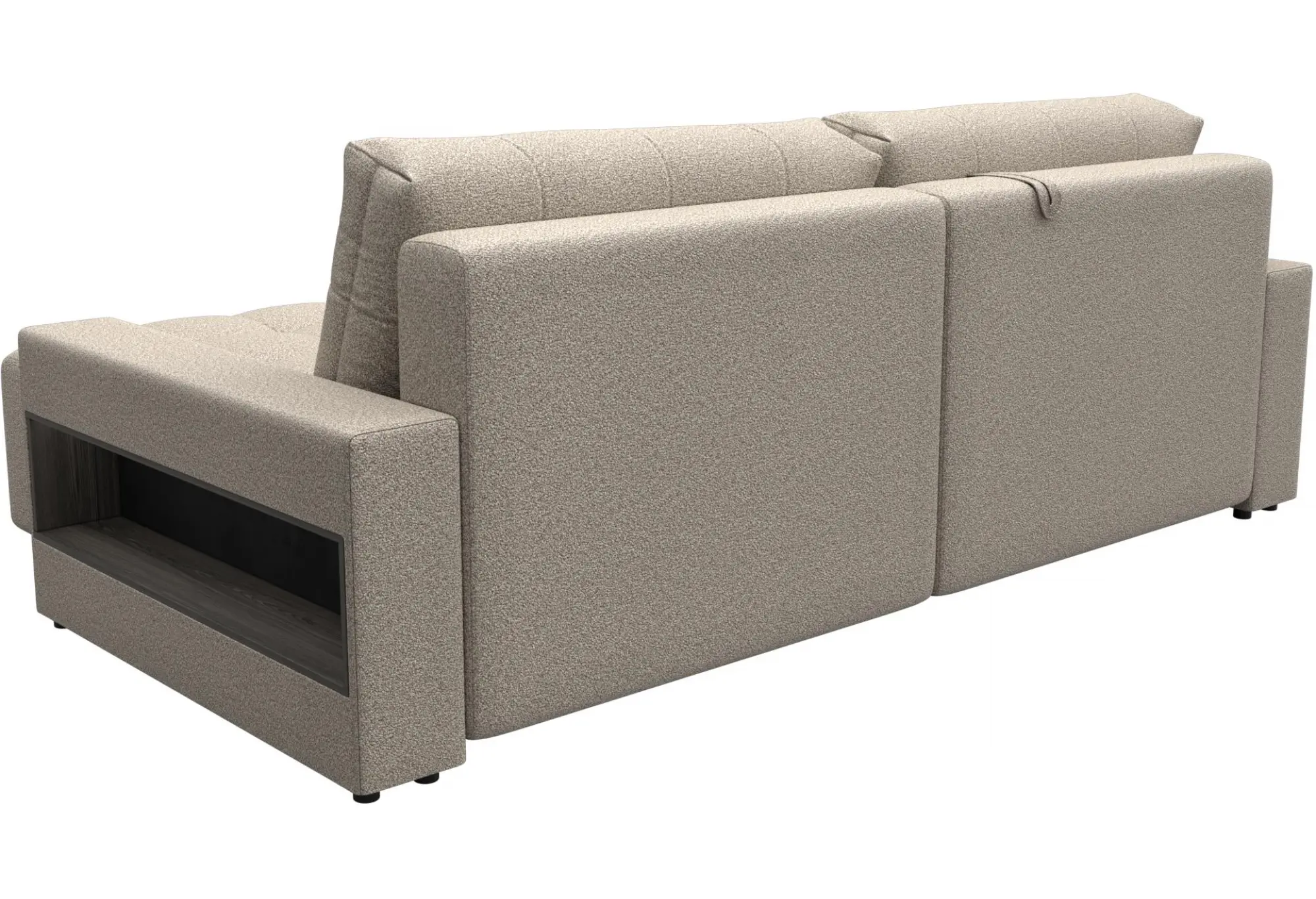 Угловой диван с полками Лига-053 НПБ в цвете NESS 04 бежевый идеально впишется в любой интерьер, предлагая не только стильный внешний вид, но и высокую функциональность. Модель выполнена из мягкого велюра, что придаёт ощущение уюта и роскоши. Независимый пружинный блок обеспечивает превосходный ортопедический эффект, что гарантирует комфортный отдых.