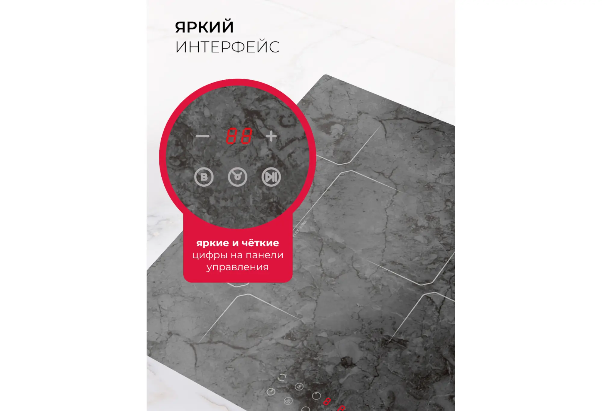 Преимущества:- Мраморная стеклокерамическая поверхность с современным дизайном