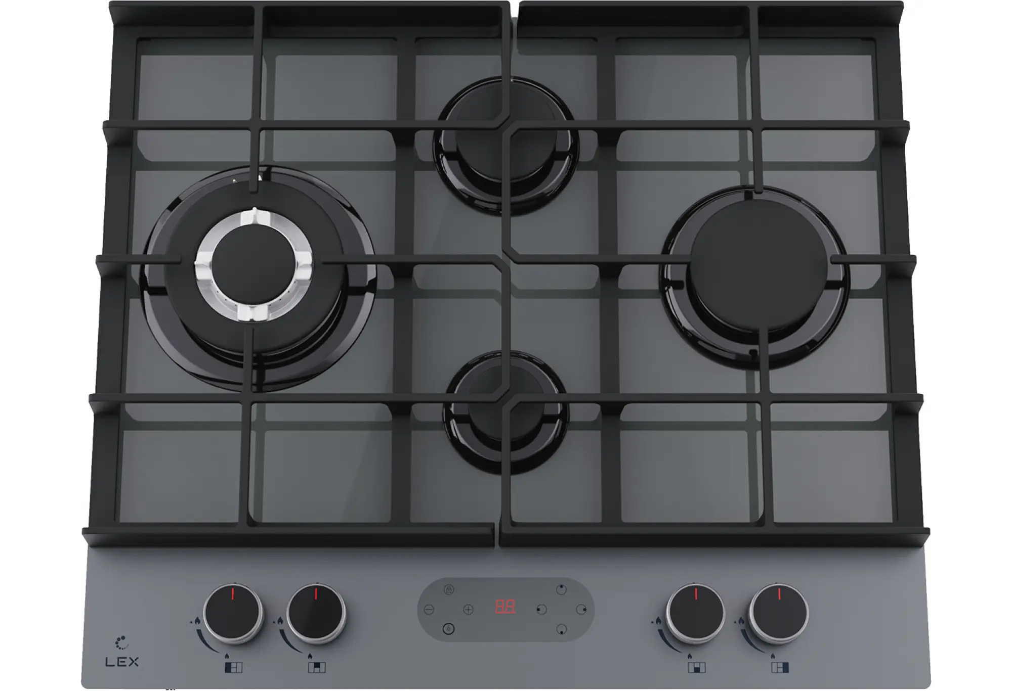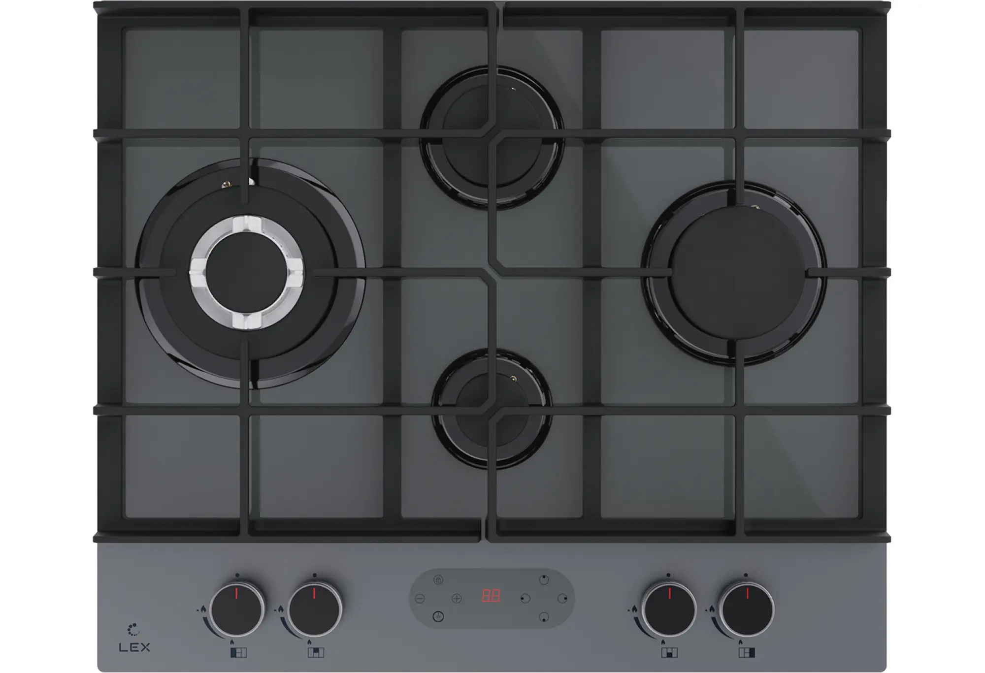 GVG 644T M — первая газовая варочная поверхность с таймером в линейке LEX. Таймер поможет улучшить результат приготовления, при этом сэкономив ваше время. Мощность конфорок настраивается привычными ручками, а для таймера предусмотрена отдельная сенсорная панель управления с дисплеем. Ее можно заблокировать, чтобы случайно не изменить параметры. Газовая варочная поверхность с 4 конфорками различного диаметра и мощности, чугунными решетками, и рабочей поверхностью из прочного закаленного стекла. Поверхность из ударопрочного, закаленного стекла это не только стильно, но и практично. Закаленное стекло не впитывает загрязнения, его легко мыть и с годами ваша поверхность не потеряет свою привлекательность. Надежные чугунные решетки не позволят вашей посуде скользить по своей поверхности за счет шероховатой структуры и прослужат вам долгие годы (чугунные решетки не подвержены деформации при воздействии высоких температур, в отличии от стальных решеток). 4 конфорки различной мощности позволят вам использовать для приготовления посуду различного диаметра, а форма решетки подходит даже для приготовления кофе в турке. Поверхность так же оснащена WOK- горелкой. Это горелка увеличенного размера и мощности, снабженная двумя рядами пламени, для более быстрого, мощного и равномерно распределения температуры, что в свою очередь подходит для приготовления разнообразных блюд в том числе и национальных блюд разных стран. За счет равномерного распределения температуры данная конфорка идеально подойдет для томления. Электроподжиг интегрированный в каждую ручку позволит вам включить подачу газа и поджечь конфорку движением одной руки. Каждая конфорка снабжена системой газ контроля, что делает данную поверхность не только стильной и практичной, но еще и максимально безопасной. При затухании огня, система газ контроля автоматически прекратит подачу газа. Варочные поверхности LEX это современно, практично и безопасно.