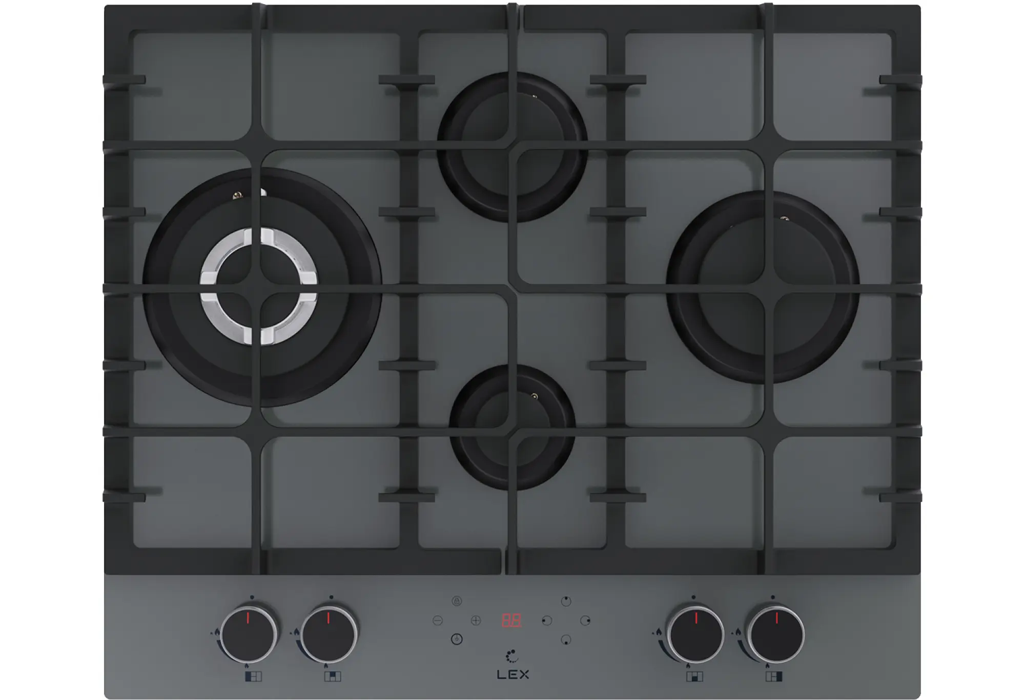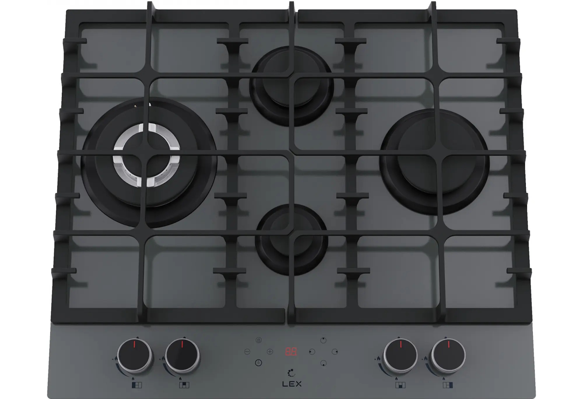 GVG 646T — первая газовая варочная поверхность с таймером в линейке LEX. Таймер поможет улучшить результат приготовления, при этом сэкономив ваше время. Мощность конфорок настраивается привычными ручками, а для таймера предусмотрена отдельная сенсорная панель управления с дисплеем. Ее можно заблокировать, чтобы случайно не изменить параметры. Газовая варочная поверхность с 4 конфорками различного диаметра и мощности, чугунными решетками, и рабочей поверхностью из прочного закаленного стекла. Поверхность из ударопрочного, закаленного стекла это не только стильно, но и практично. Закаленное стекло не впитывает загрязнения, его легко мыть и с годами ваша поверхность не потеряет свою привлекательность. Надежные чугунные решетки не позволят вашей посуде скользить по своей поверхности за счет шероховатой структуры и прослужат вам долгие годы (чугунные решетки не подвержены деформации при воздействии высоких температур, в отличии от стальных решеток). 4 конфорки различной мощности позволят вам использовать для приготовления посуду различного диаметра, а форма решетки подходит даже для приготовления кофе в турке. Поверхность так же оснащена WOK- горелкой. Это горелка увеличенного размера и мощности, снабженная двумя рядами пламени, для более быстрого, мощного и равномерно распределения температуры, что в свою очередь подходит для приготовления разнообразных блюд в том числе и национальных блюд разных стран. За счет равномерного распределения температуры данная конфорка идеально подойдет для томления. Электроподжиг интегрированный в каждую ручку позволит вам включить подачу газа и поджечь конфорку движением одной руки. Каждая конфорка снабжена системой газ контроля, что делает данную поверхность не только стильной и практичной, но еще и максимально безопасной. При затухании огня, система газ контроля автоматически прекратит подачу газа. Варочные поверхности LEX это современно, практично и безопасно.