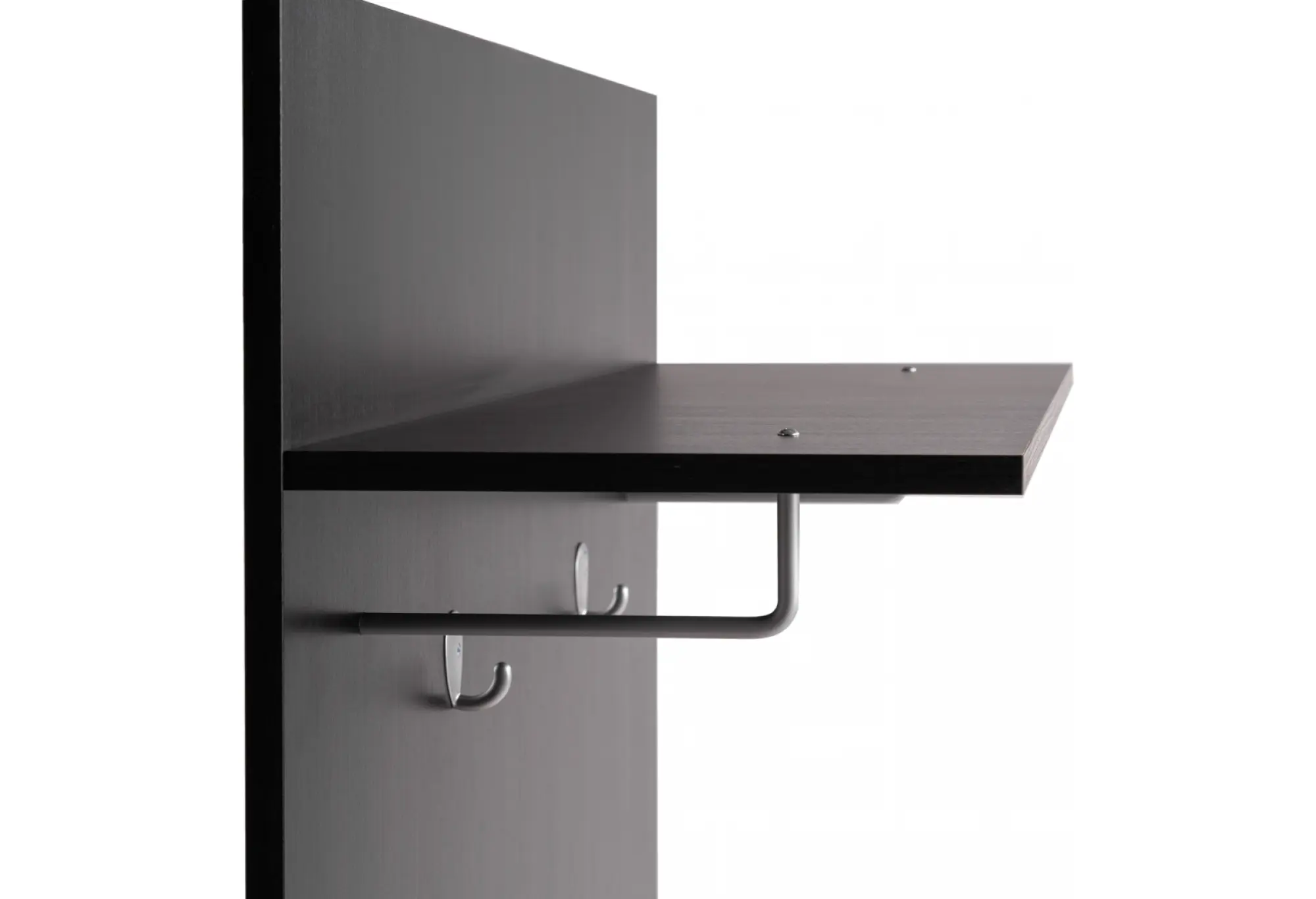 Тёмный оттенок дуб венге и лаконичная геометрия делают вешалку уместной в современном интерьере с нейтральной или контрастной отделкой. Конструкция рассчитана на настенный монтаж, что позволяет экономить полезную площадь пола и поддерживать визуальный порядок. Изделие подходит как для жилых, так и для общественных помещений, а заявленный гарантийный срок — 24 месяца для жилых и 18 месяцев для объектов общего пользования — подчёркивает надёжность изделия при повседневной эксплуатации.