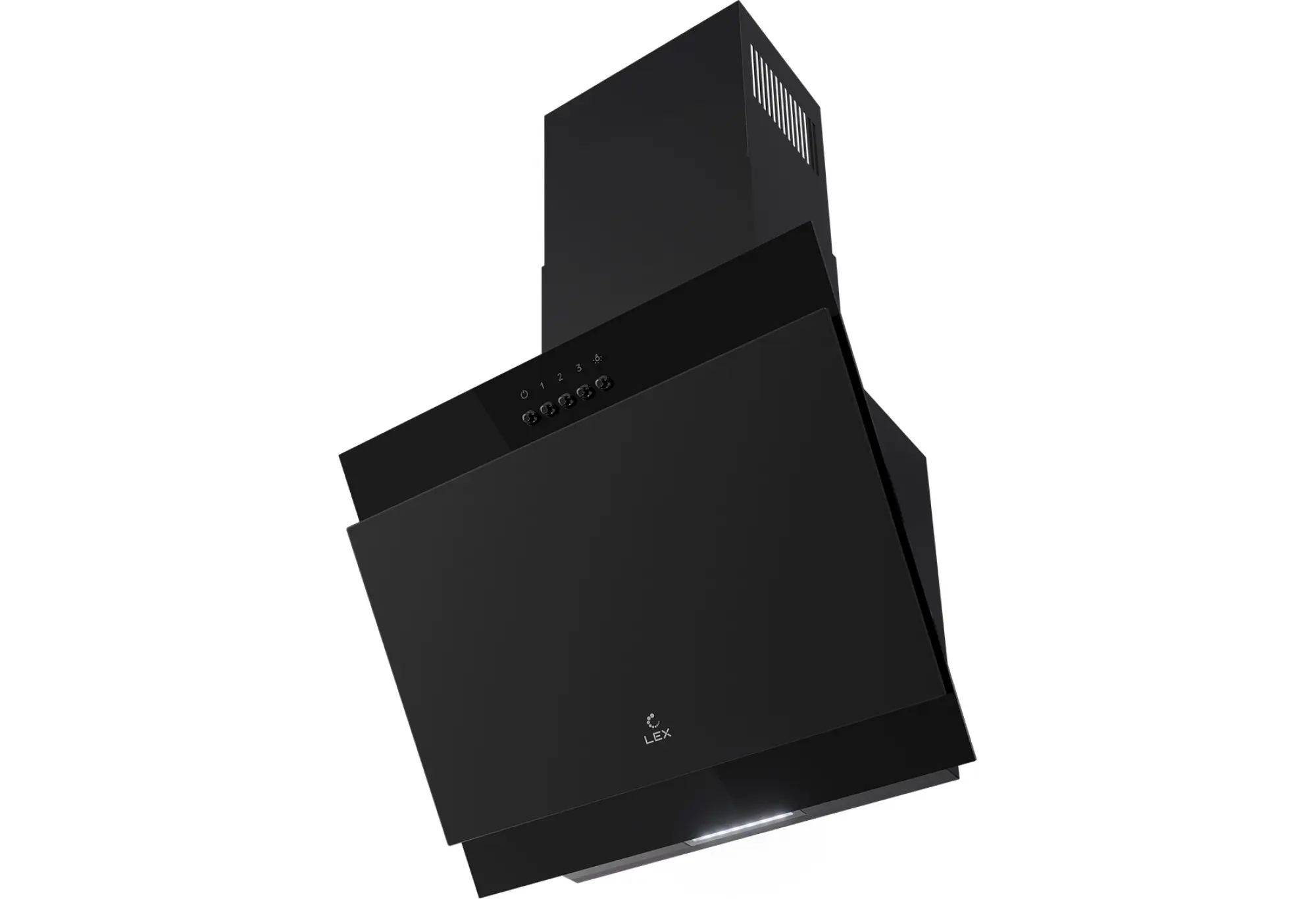 Корпус из окрашенной стали в сочетании с чёрным стеклом создаёт сдержанный, аккуратный внешний вид, который легко вписывается в современные интерьеры. Наклонная конструкция обеспечивает более свободный доступ к варочной зоне и снижает риск удариться о край вытяжки.